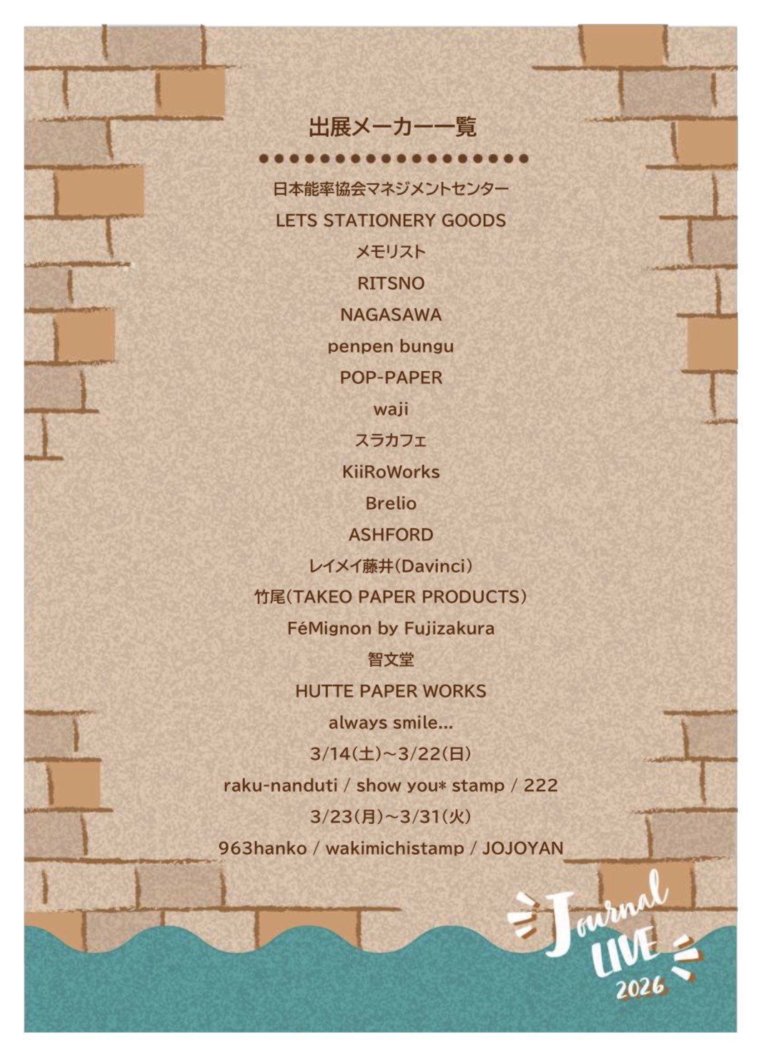 3/20(金・祝)~21(日) Journal LIVE2026